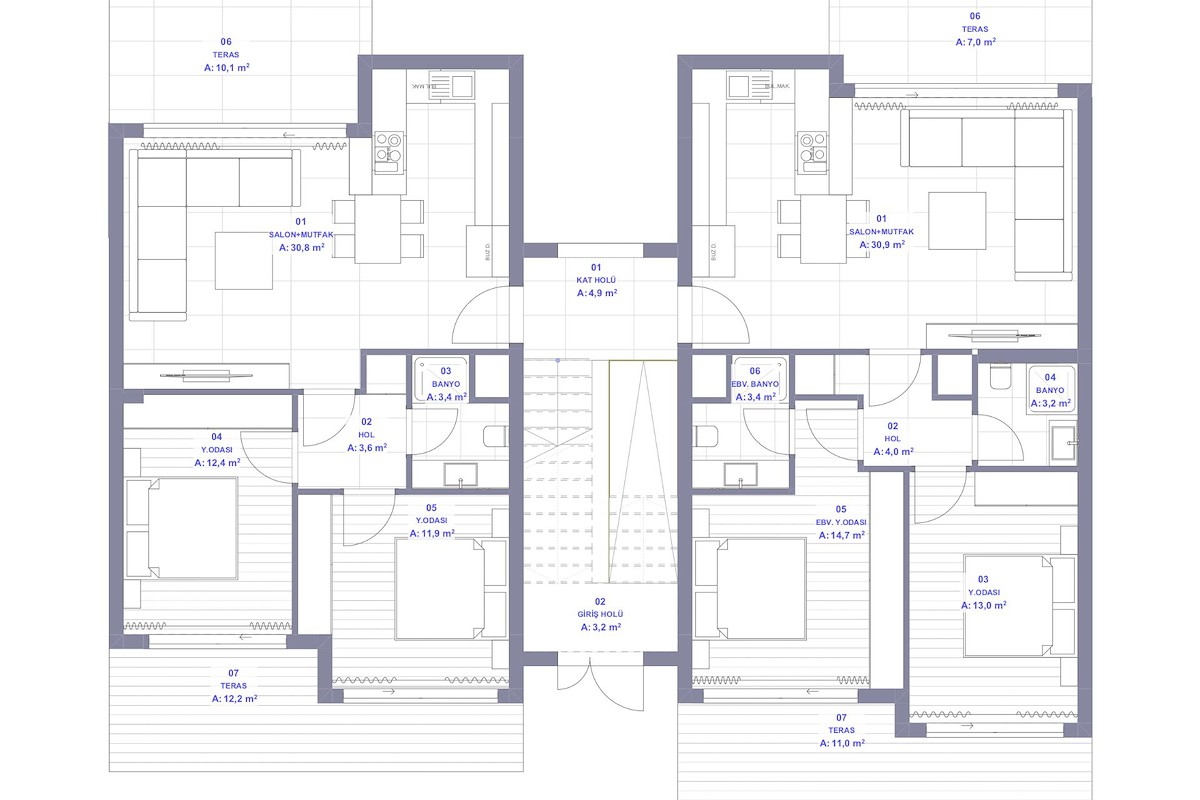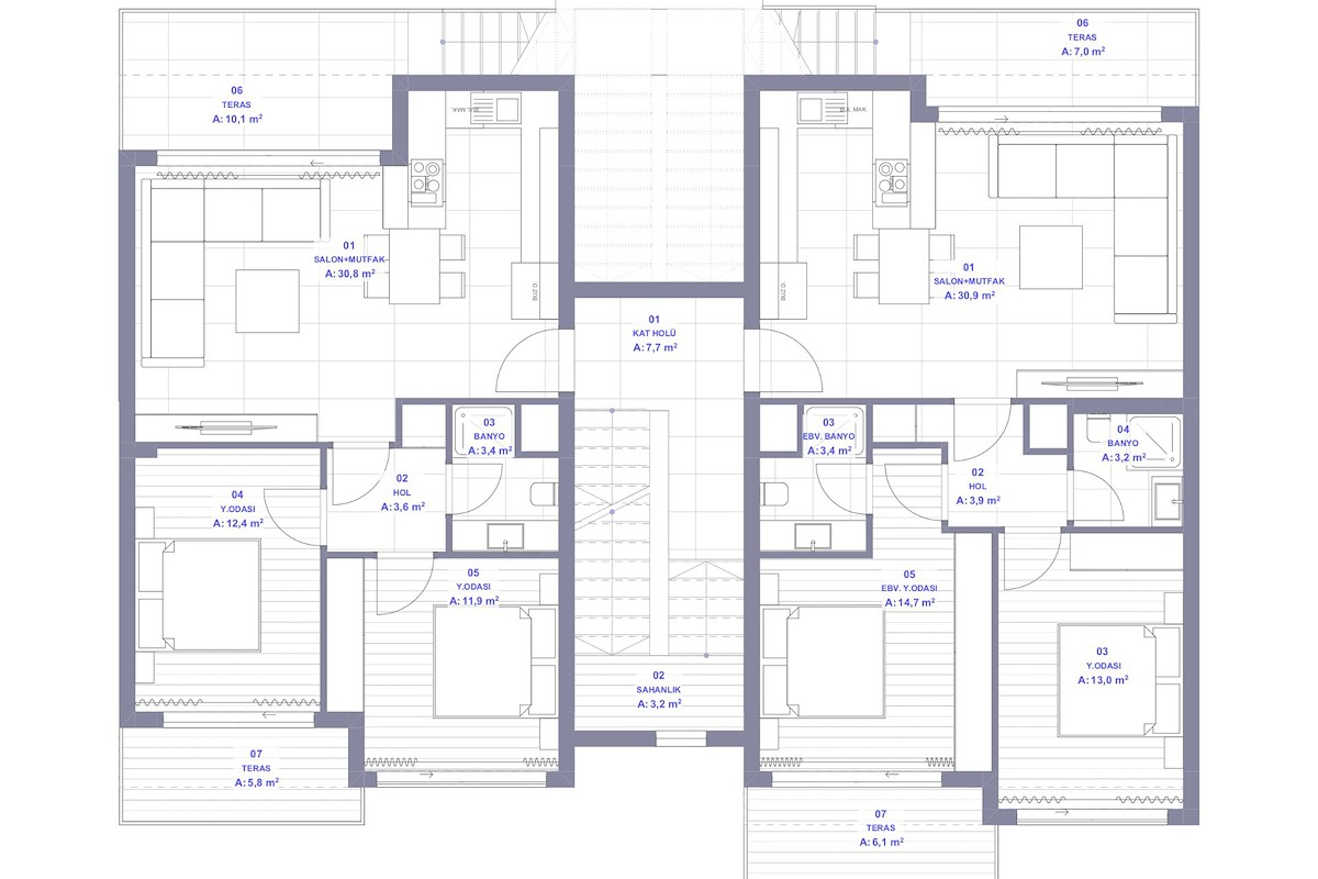 Proje , 1+1 bahçe Daireler ve çatı katları ile 2+1 bahçe ve Penthouse Daireler de dahil olmak üzere özenle tasarlanmış çeşitli konut seçenekleri sunmaktadır. Bazı daireler, hem konforu hem de mahremiyeti artıran özel yüzme havuzu ve ebeveyn banyoları gibi ek lüks olanaklara sahiptir.