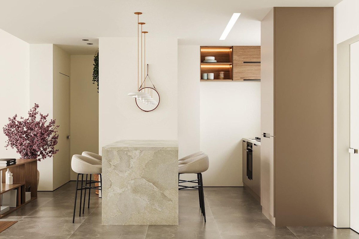 Yüksek standartlarda inşa edilmiş, ışığı ve alanı yakalamak için yüksek tavanlara sahip, yerden tavana kadar
