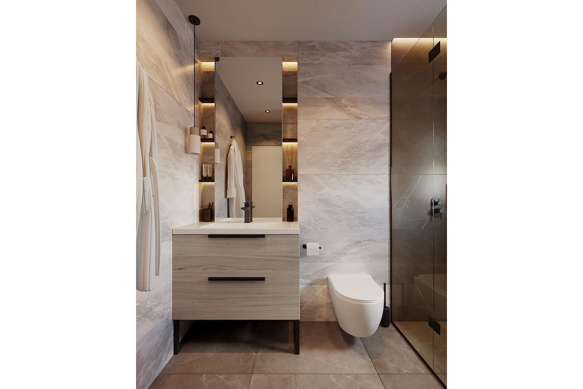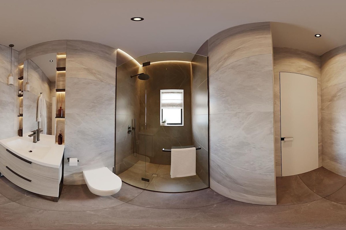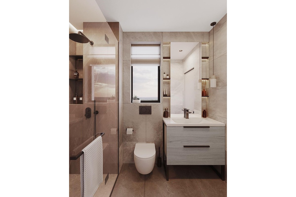 Banyolara yerden ısıtma sistemi kurulacak ve çatı terasları özel banyolarla donatılacak.