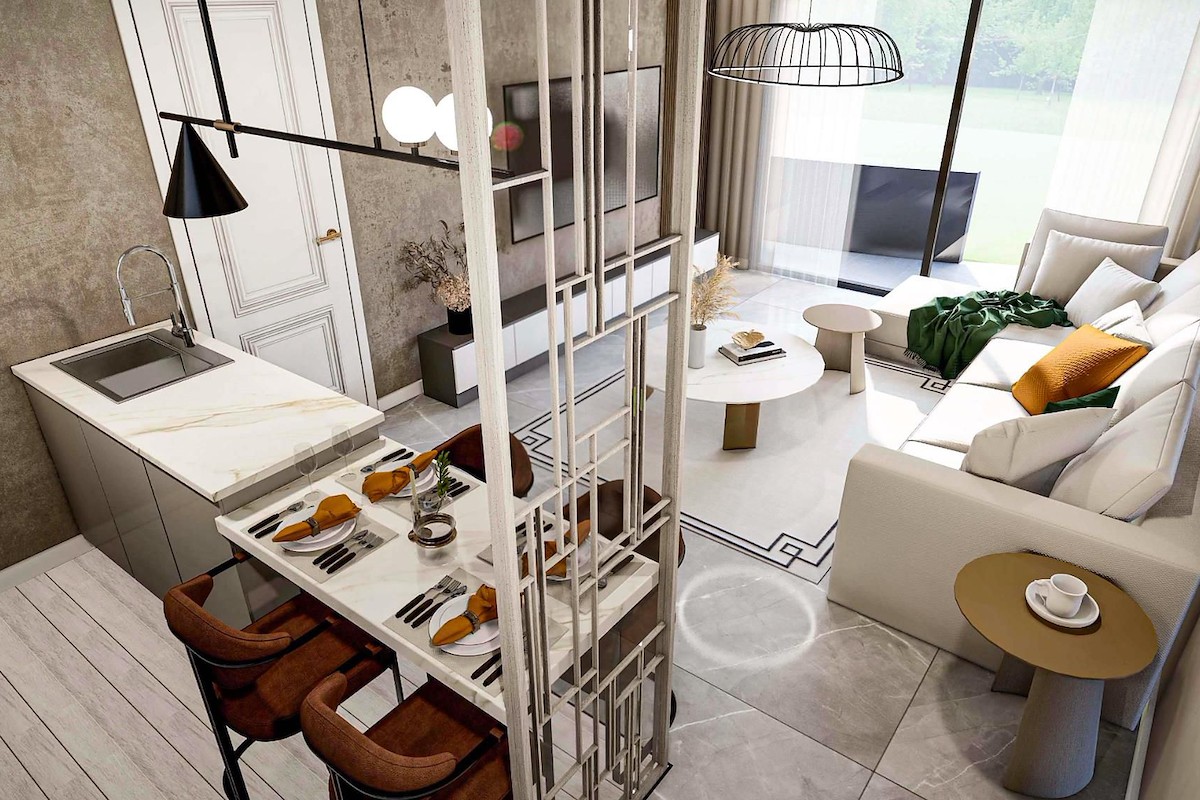 Kompleks, farklı yaşam tarzlarına uygun çeşitli düzenler sunan 4 konut bloğu ve 8 özel Villalar oluşmaktadır. Stüdyo standart, Loft stüdyo, 1+1 standart, 1+1 Loft, 2+1 standart, 2+1 Loft ve lüks 2+1 çatı katları arasından seçim yapın. Birçok konutta dinlenme ve eğlence için mükemmel olan özel teraslar, barbekü alanları ve jakuziler bulunmaktadır.